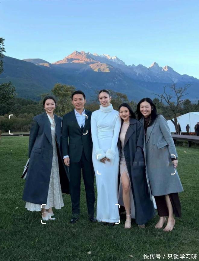 而且注意看霍启山和旁边的白衣女子,应该就是新娘。当天新娘穿的便是这件白色的长裙,袖子处还有毛领。如果霍启山带着娜然去给新娘新郎敬酒的话,可见也在婚礼现场的霍震霆也是知晓娜然的存在,那两人的关系或许便不只是恋爱,甚至到了见家长的地步了。