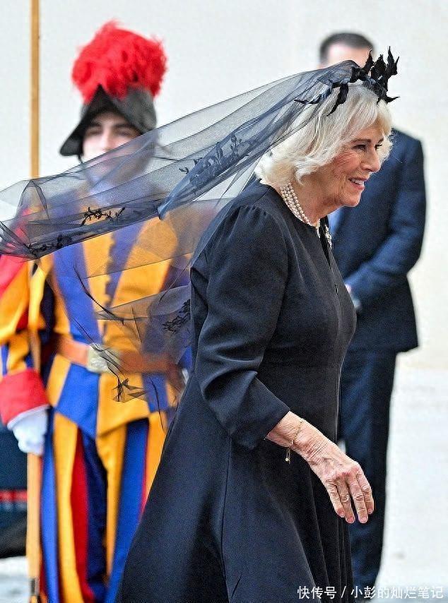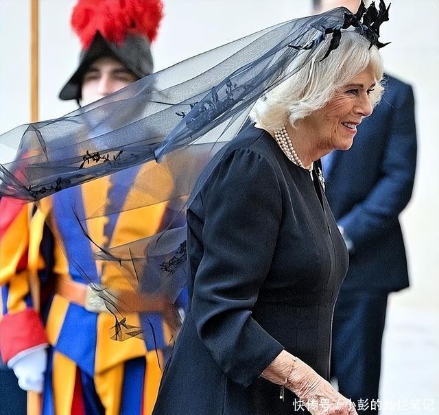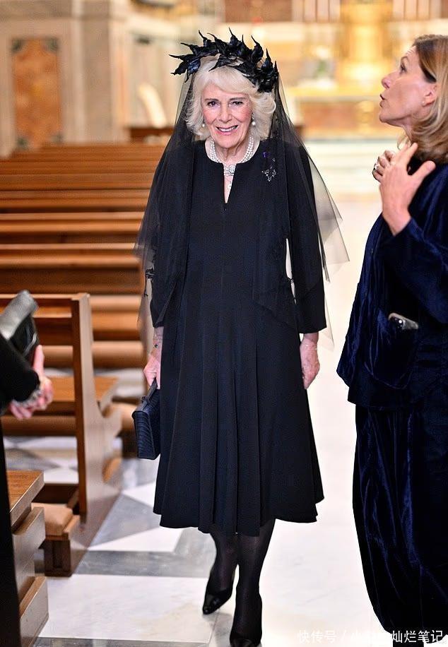 一把年纪的王后,有时候就是这样不按常理出牌,我行我素的穿衣配饰, 用网友的话来说,卡米拉戴的这顶黑纱感觉头上停了一群乌鸦。