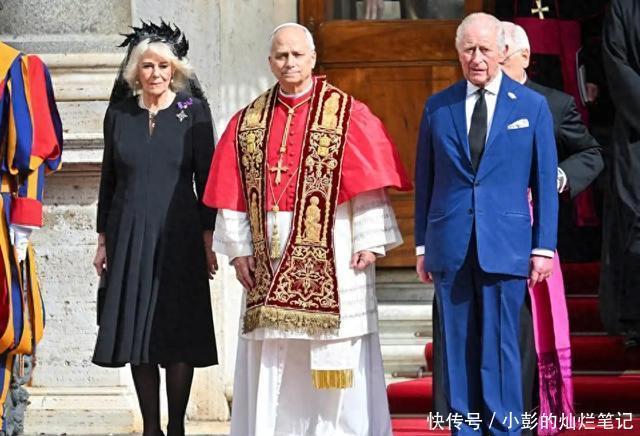 这还真不是网友挑剔,再看看卡米拉与教皇及查尔斯的合影, 那外撇的“分叉”脚,左脚都恨不得伸出地毯外面去了, 这是一个端庄王后的体态与礼仪吗?